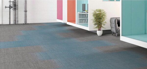 Thảm trải sàn dạng tấm thiết kế chuyển màu (gradient) hiện đại, mang tính thẩm mỹ cao, bền chắc, phù hợp cho văn phòng và không gian thương mại.